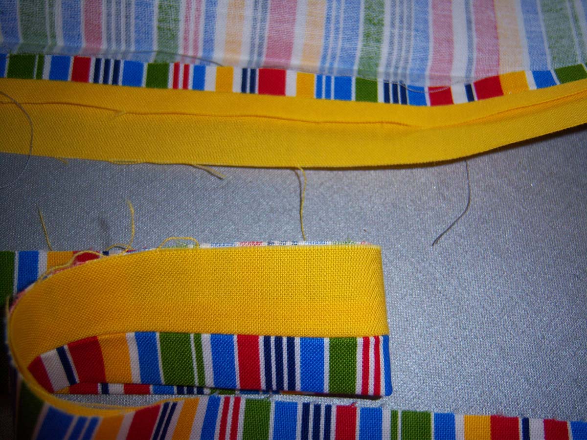 Using a 2 ½ inch binding, Flange  cut 1 ¾ in. Outer Binding  cut 1 ¼ in.