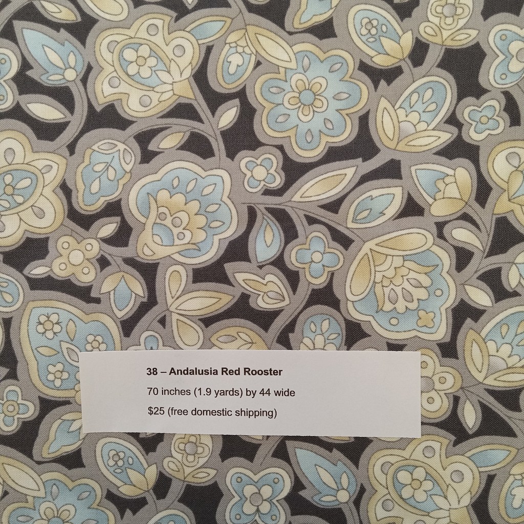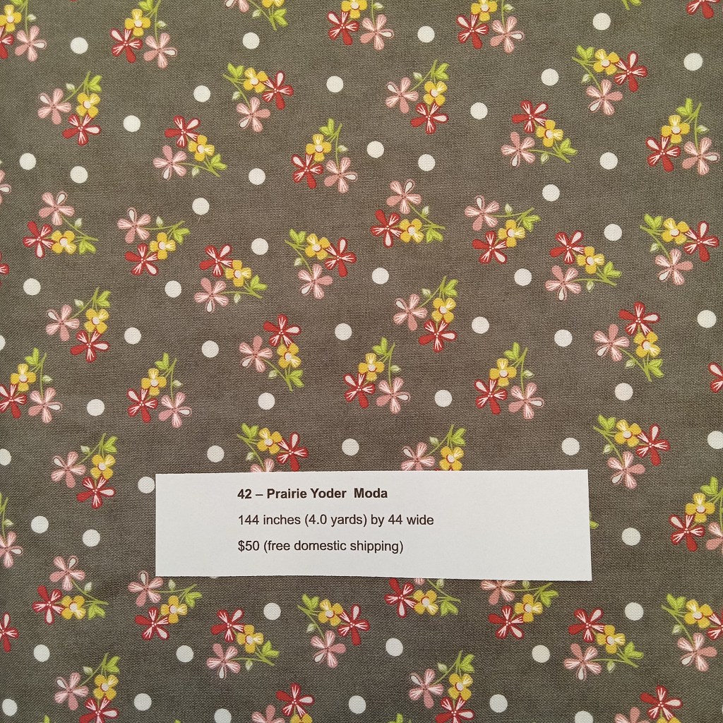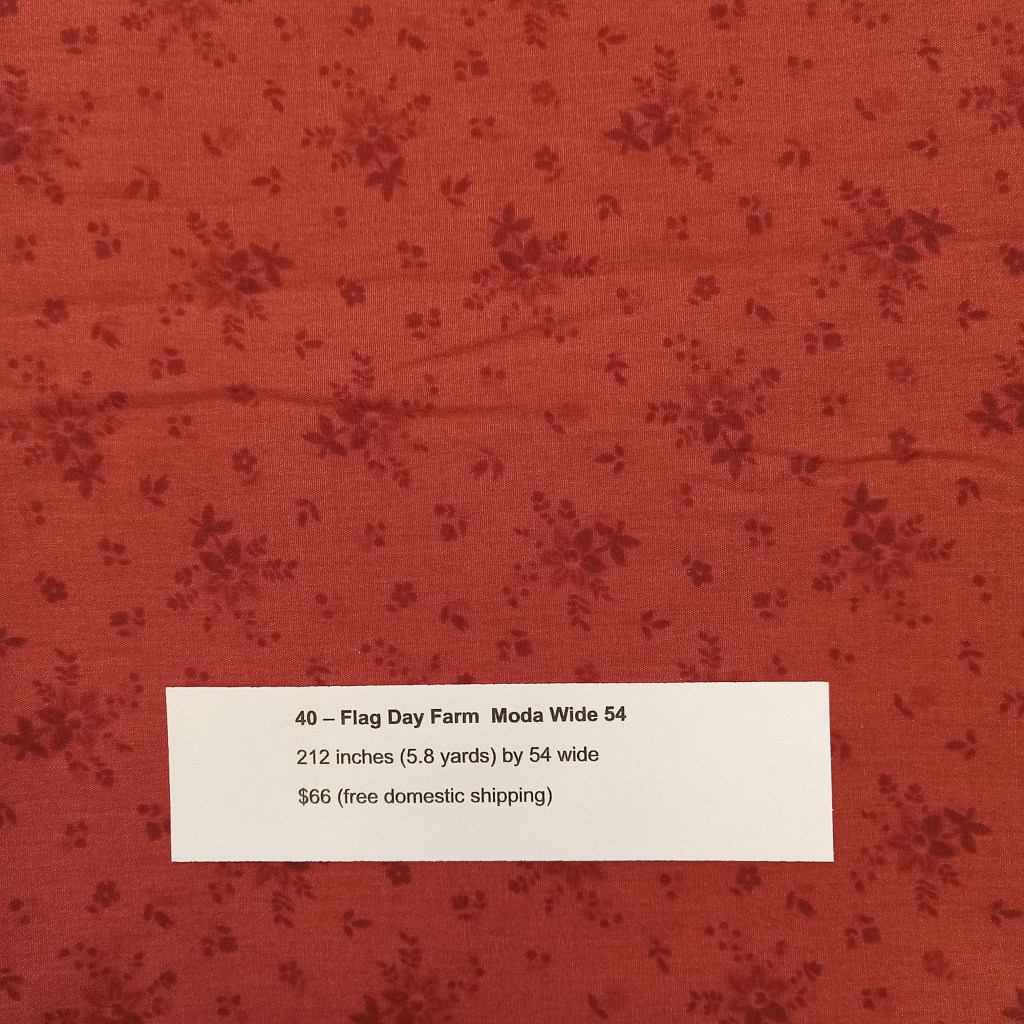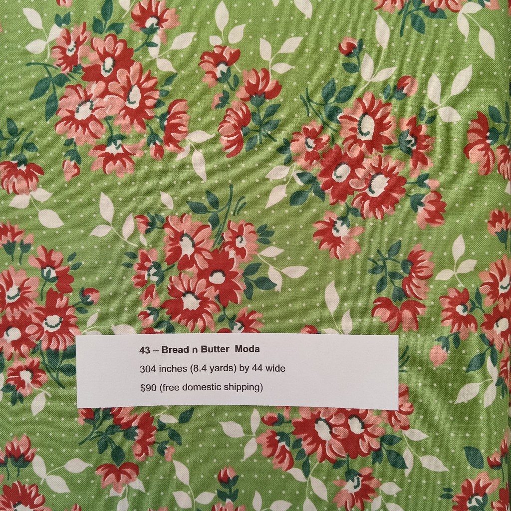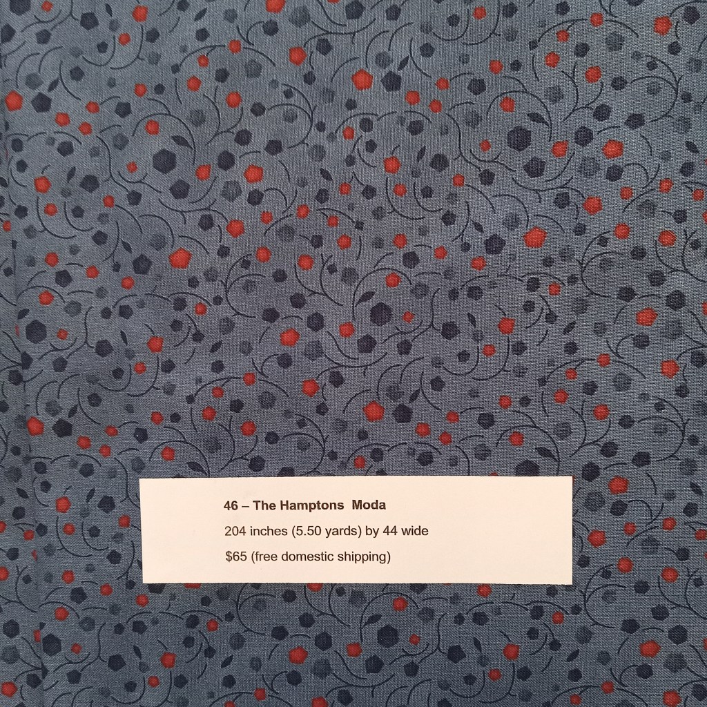 The following are quilt fabrics that we are offering for sale from our studio. All fabrics are being sold as measured and price includes free domestic shipping. Please direct all questions to me thru Lake House Quilts.