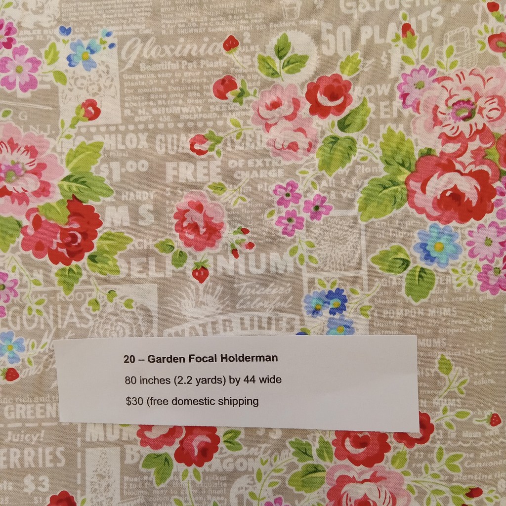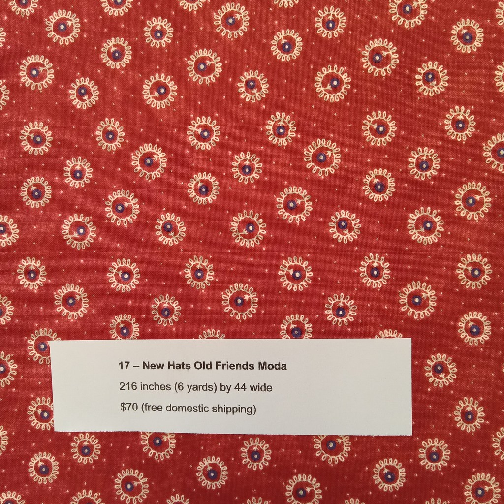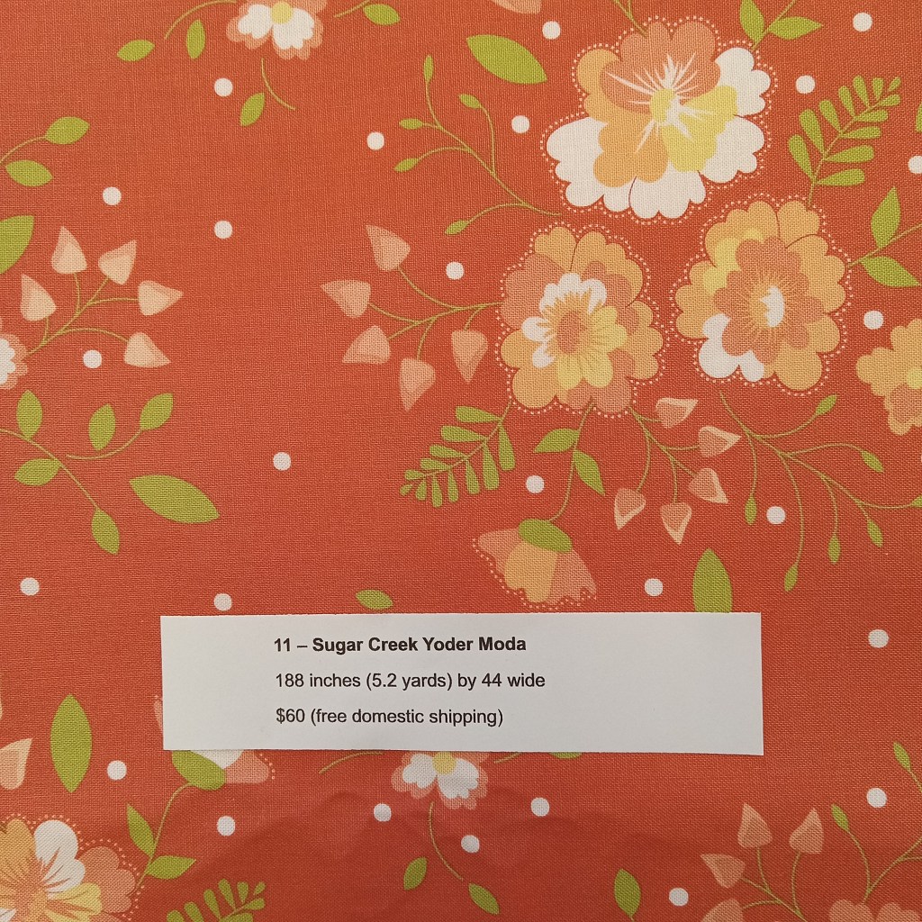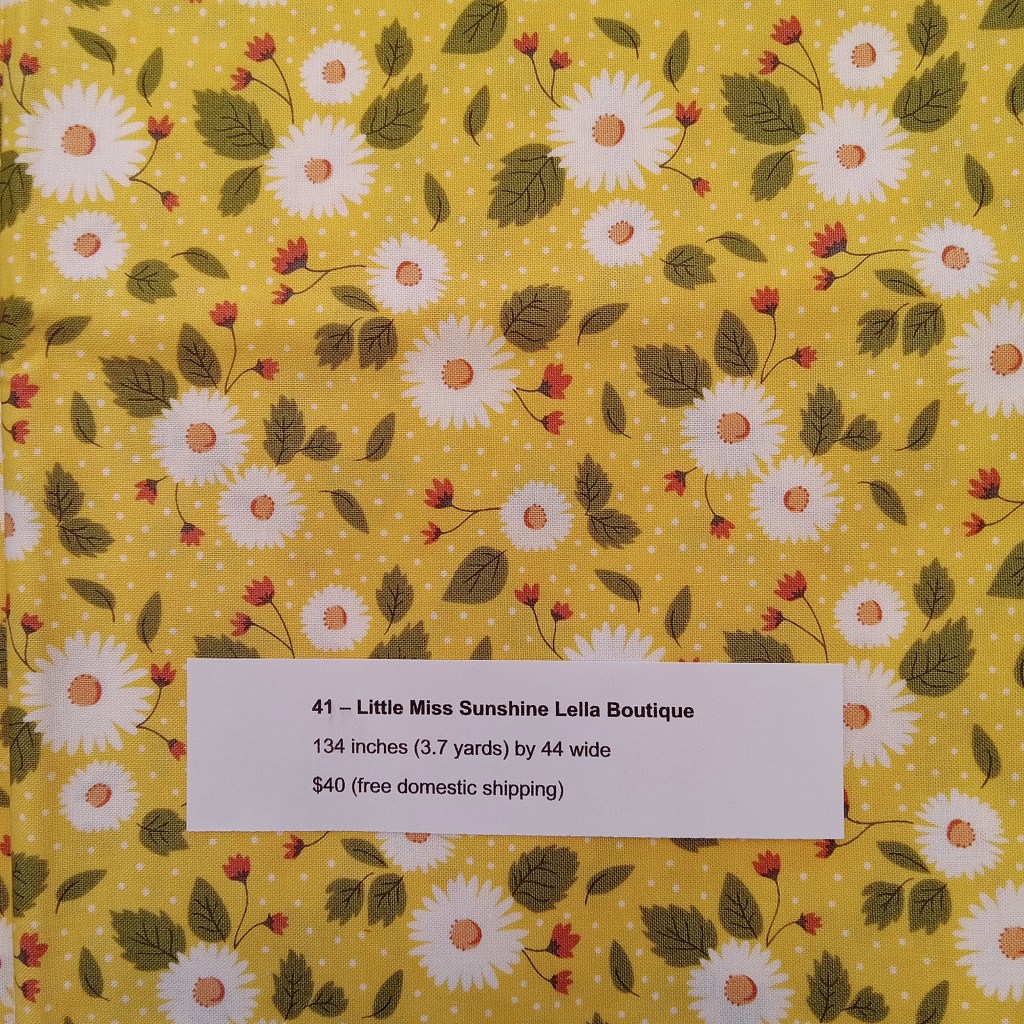 The following are quilt fabrics that we are offering for sale from our studio. All fabrics are being sold as measured and price includes free domestic shipping. Please direct all questions to me thru Lake House Quilts.