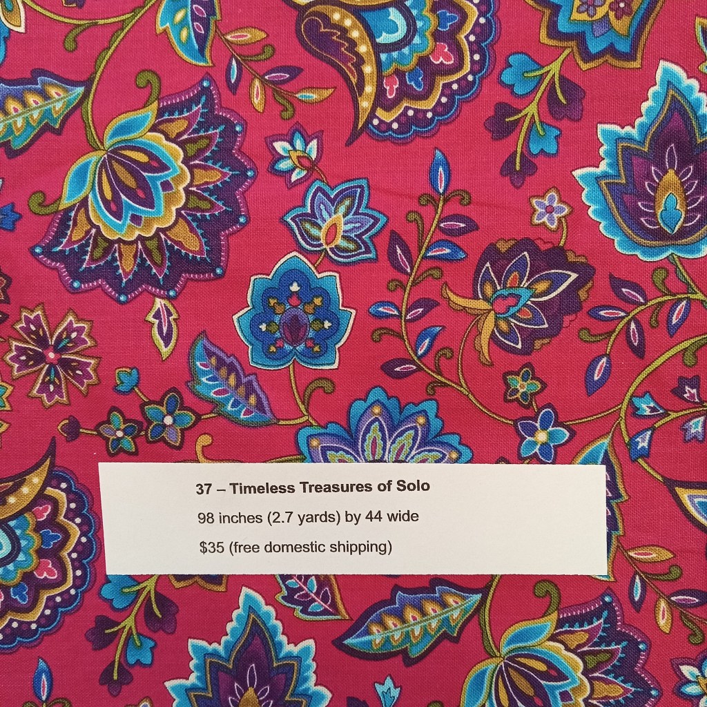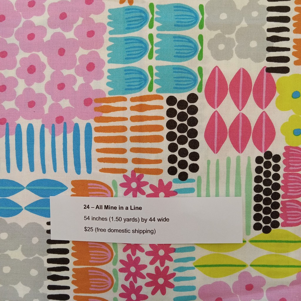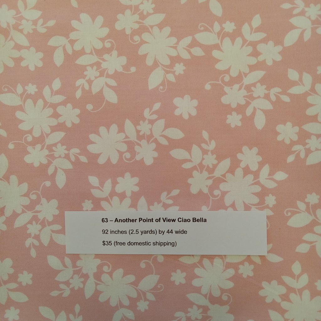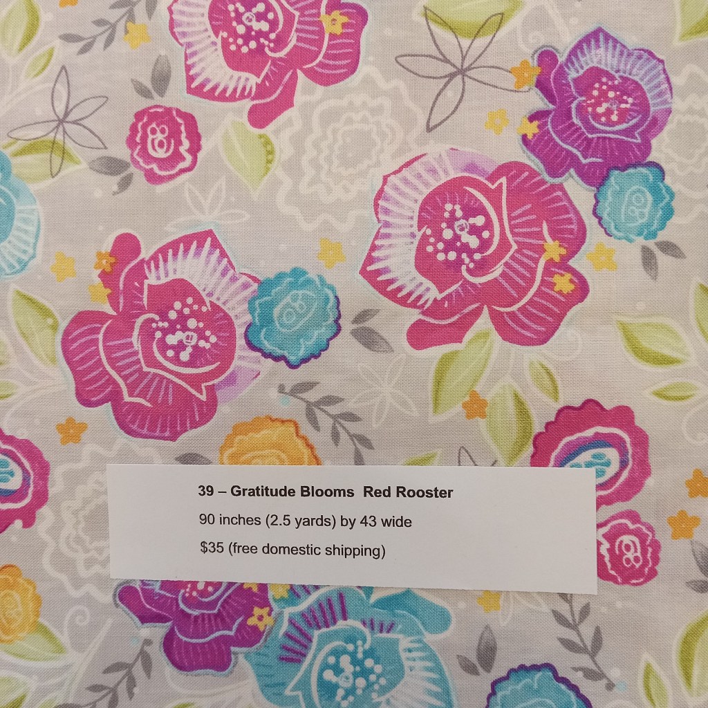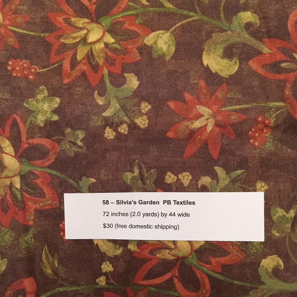 The following are quilt fabrics that we are offering for sale from our studio. All fabrics are being sold as measured and price includes free domestic shipping. Please direct all questions to me thru Lake House Quilts.