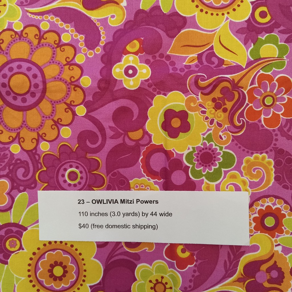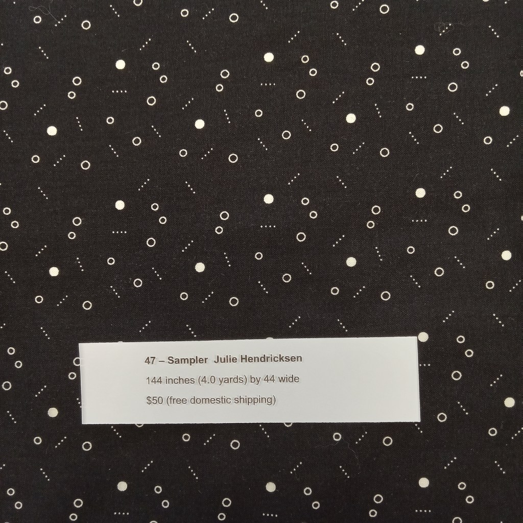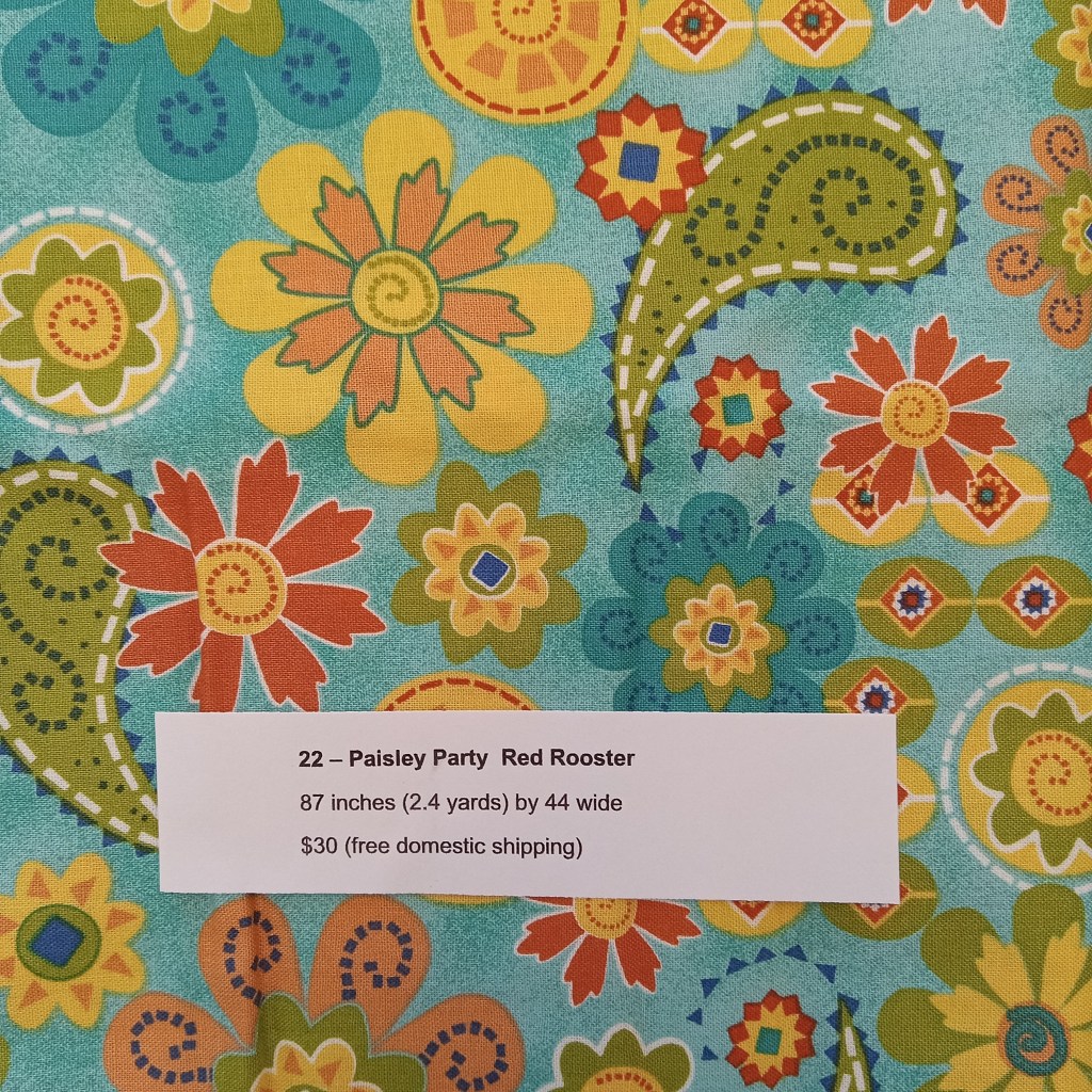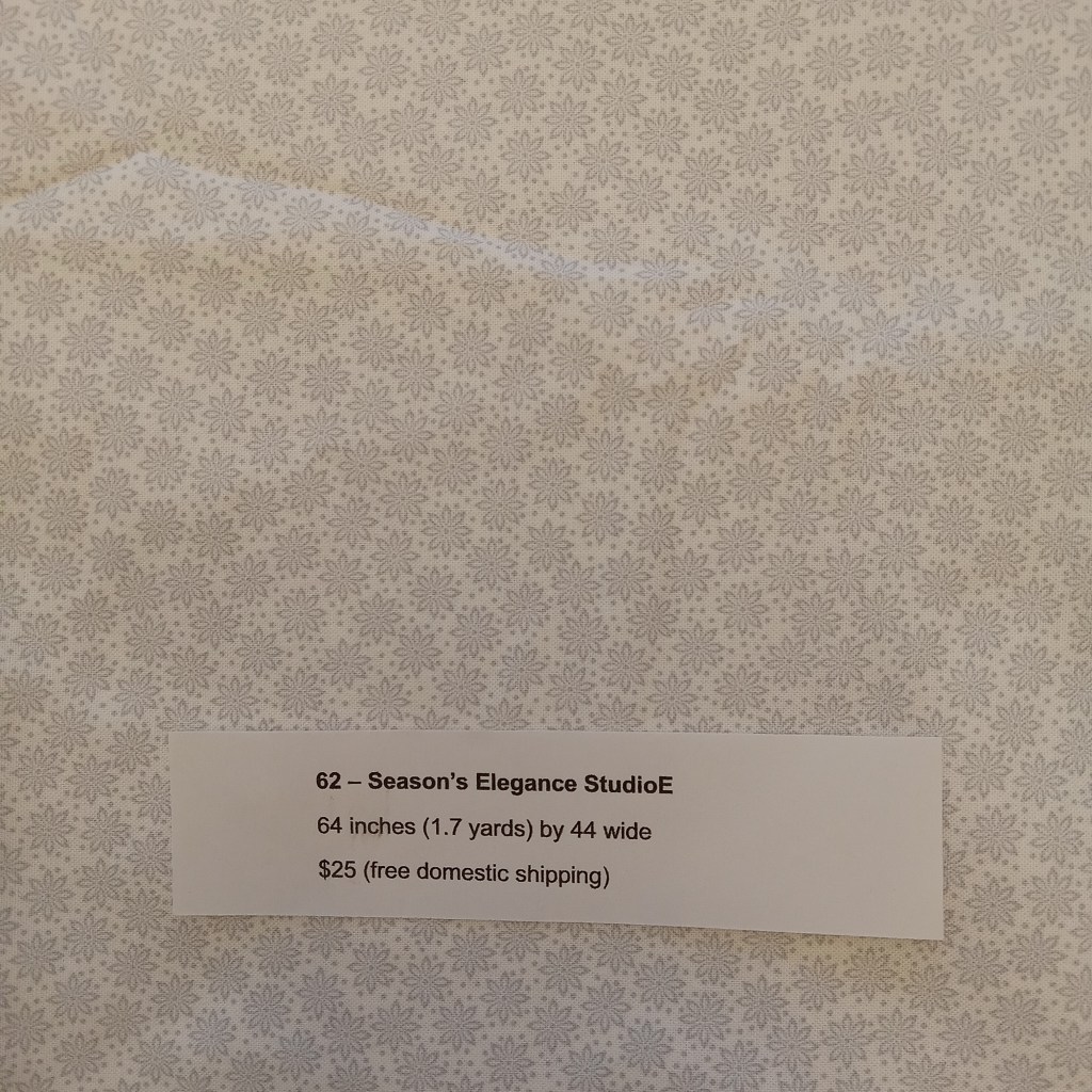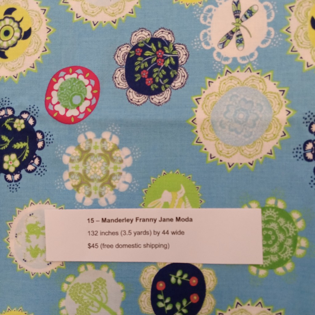 The following are quilt fabrics that we are offering for sale from our studio. All fabrics are being sold as measured and price includes free domestic shipping. Please direct all questions to me thru Lake House Quilts.